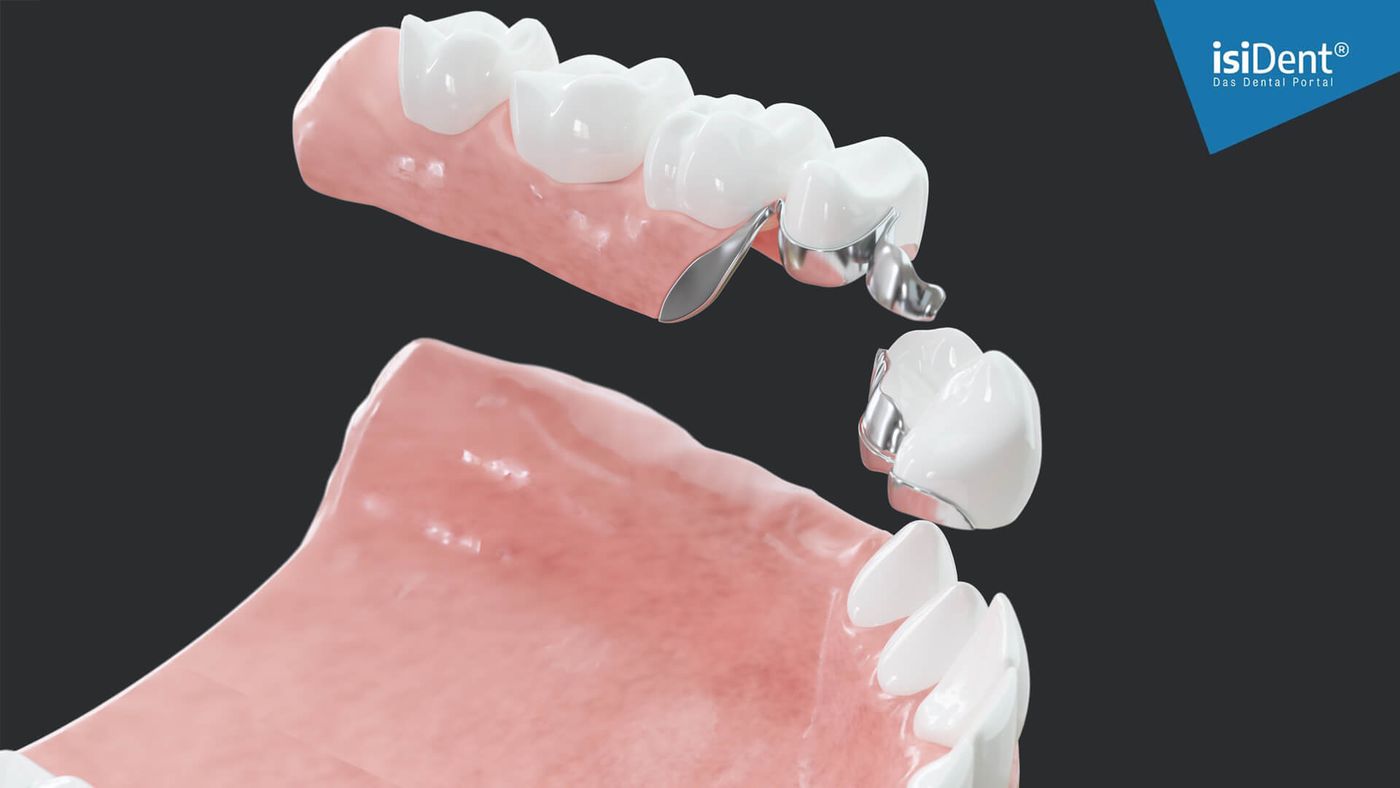 Diese Technik kommt vor allem zur Anwendung, wenn nur auf einer Kieferhälfte Zähne fehlen. Dabei ist ein feinmechanisches Halteelement,