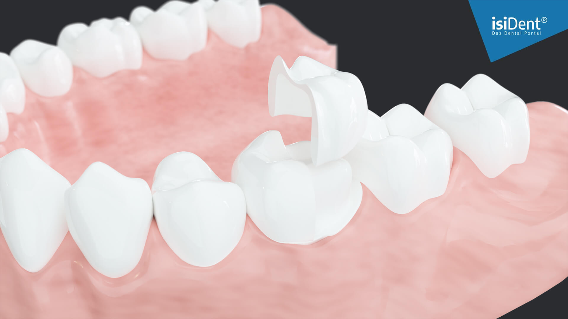 Ein weiterer Vorteil der Vollkeramikkrone gegenüber der metallkeramischen Verblendkrone besteht darin, dass die Keramik am präparierten Zahn abschließt. Dadurch kann verhindert werden, dass später unter Umständen ein Metallrand im Bereich des Zahnfleisches sichtbar wird.