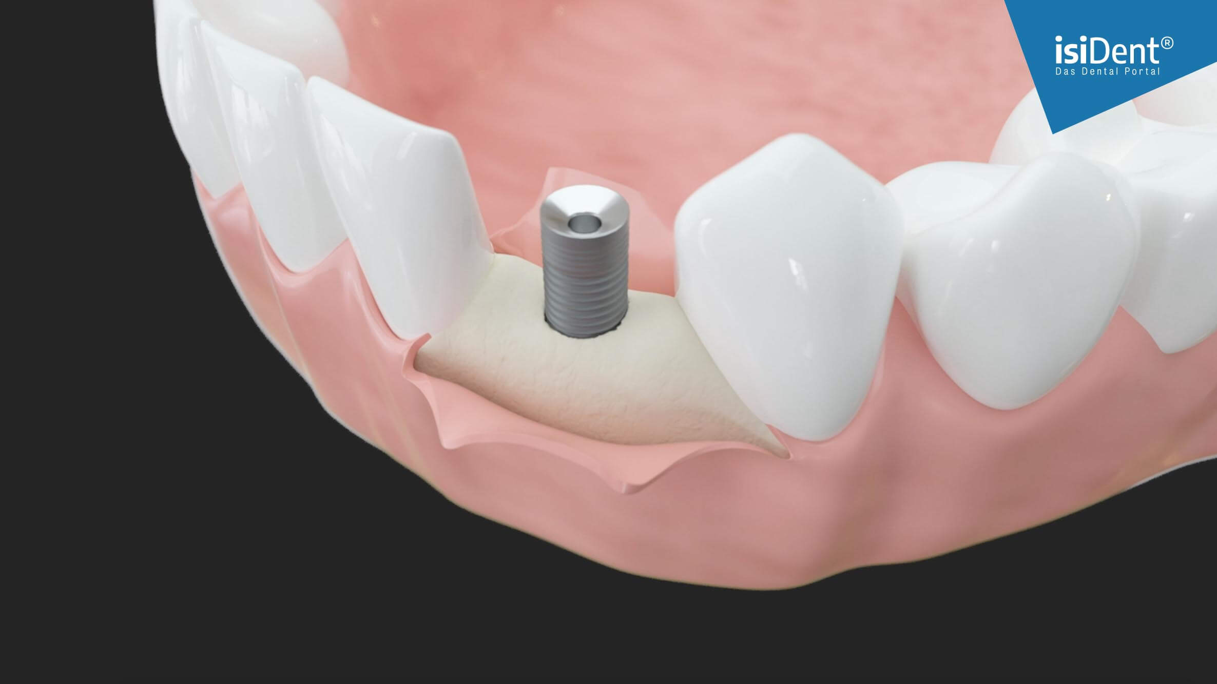 Das Implantat wird eingesetzt. Zur besseren Wundheilung dient eine Verschlussschraube, die vor dem Zuklappen und vernähen des Zahnfleisches eingesetzt wird.
