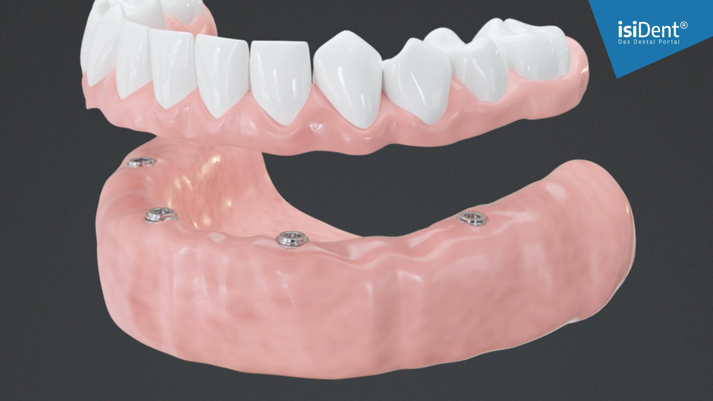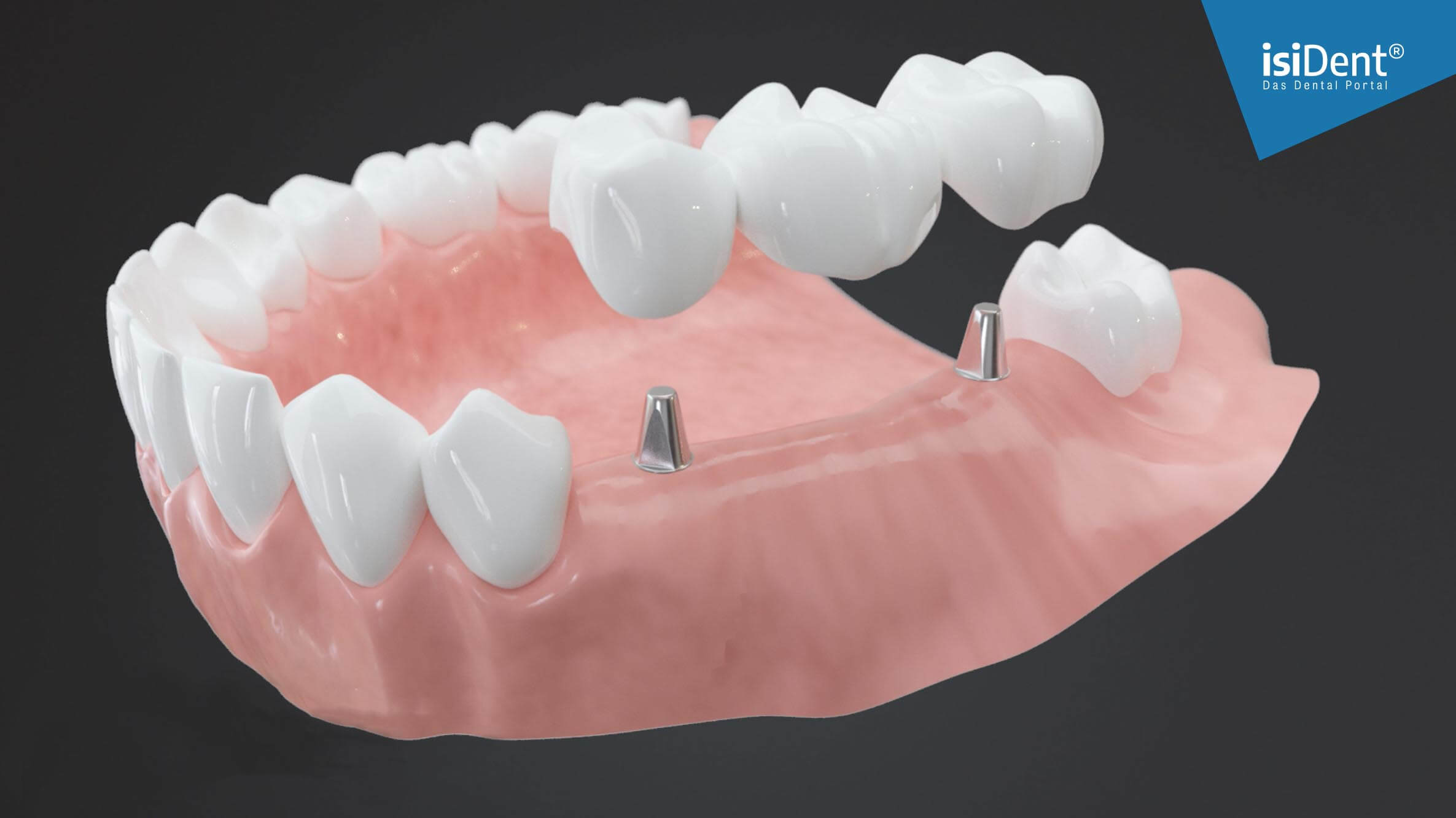Die fehlenden Zähne im Mundraum werden durch Implantate ersetzt, auf die eine Brücke aufgesetzt wird. So werden die Nachbarzähne voll erhalten.